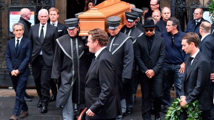 ขณะที่บรรดาคีย์แมนแห่งวงการความเร็วอย่าง ฌอง ทอดต์, เชส เครีย์, แซค บราวน์, อันเดรส ไซเดิล, รอส บราวน์ รวมถึง ลูก้า ดิ มอนเตเซโมโล และ สเตฟาโน่ โดเมนิคาลี อดีตทีมบอสเฟอร์รารี่ ได้ร่วมเป็นเกียรติในพิธีศพของ อดีตดาวขับออสเตรียน ด้วยเช่นกัน