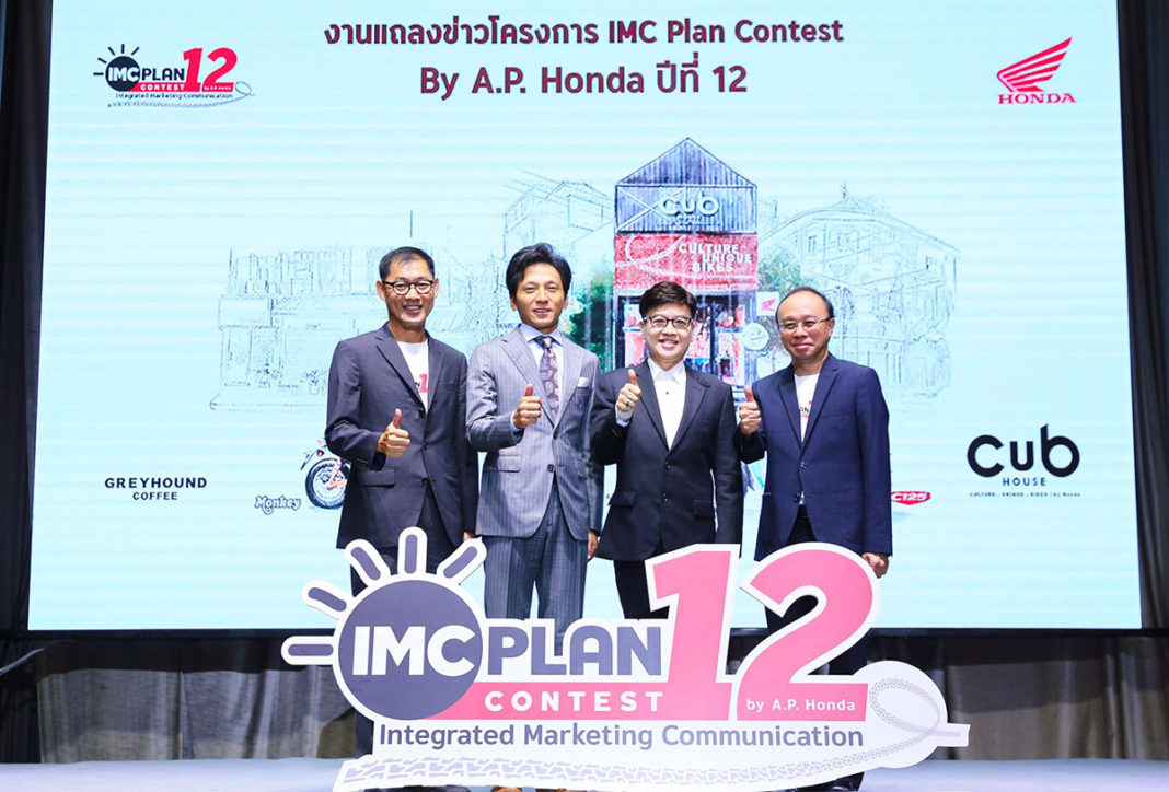 เอ.พี. ฮอนด้า จำกัด ผู้จัดจำหน่ายรถจักรยานยนต์ฮอนด้าในประเทศไทย เปิดตัวโครงการประกวดแผนสื่อสารการตลาด IMC Plan Contest by A.P. Honda ครั้งที่ 12 โดยความร่วมมือจากมาร์เก็ตเธียร์ (Marketeer) สำนักข่าวและสื่อออนไลน์ทางการตลาดชื่อดังของเมืองไทย วางเป้าหมายพัฒนานักศึกษารุ่นใหม่สู่การเป็นนักการตลาดมือดีที่เก่งทั้งทฤษฏีและปฏิบัติ