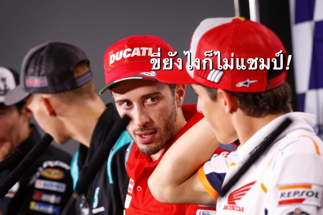 อันเดรีย โดวิซิโอโซ นักบิดอิตาเลียนออกอาการ “ไม่แฮปปี้” กับตำแหน่งรองแชมป์โลก 3 ปีติดต่อกัน เนื่องจาก ดูคาติ ยังไม่สามารถต่อกรเพื่อแย่งแชมป์โลกจาก มาร์ค มาร์เกซ ได้เลย