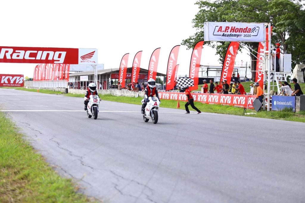 บันไดขั้นแรกแห่งการพัฒนานักบิดดาวรุ่งชาวไทยสู่การแข่งขันระดับโลก รายการ เอ.พี. ฮอนด้า อะคาเดมี่ ประจำปี 2020 ภายใต้โครงการ “ฮอนด้า เรซ ทู เดอะ ดรีม” มีคิวประลองความเร็วสนาม 2 ที่ไทยแลนด์ เซอร์กิต นครชัยศรี เมื่อสุดสัปดาห์ที่ผ่านมา ผลปรากฏว่า “น้องกัน” พชรกร ทองเกิดหลวง นักบิดตัวจิ๋ว วัย 10 ขวบ ควบเรซแมชชีน Honda NSF100 คว้าแชมป์สนามนี้ไปครอง ส่วนอันดับที่ 2 ได้แก่ “น้องจิมมี่” บูรพา วันมูล และอันดับที่ 3 เป็นของ “น้องไบร์ท” เตชินท์ อินทร์อภัย