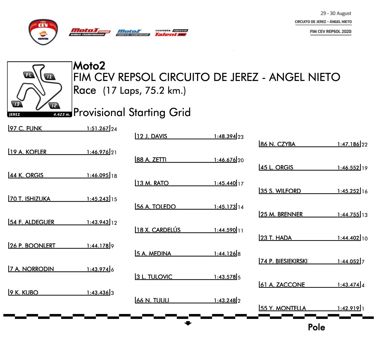 ศึกรถจักรยานยนต์ชิงแชมป์ยุโรป รายการ ซีอีวี โมโตทู ยูโรเปี้ยน แชมเปี้ยนชิพ 2020 สนาม 3 มีคิวดวลความเร็วที่ เซอร์กิโต เดอ เฆเรซ ประเทศสเปน ระหว่างวันที่ 29-30 สิงหาคมนี้