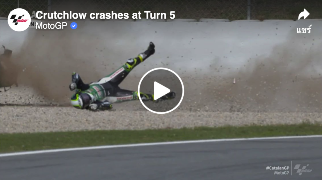 คาล ครัชโลว์ มนุษย์เสริมใยเหล็ก พลาดล้มอย่างแรงขณะพยายามบิดทำเวลาเพื่อเข้าสู่ Q2 ทว่า กลับเสียหลักล้มลงบริเวณโค้ง 5 ถึงแม้จะลุกขึ้นมาได้ แต่ไม่แน่ใจจะมีส่วนไหนบุบสลายเพิ่มอีกหรือไม่