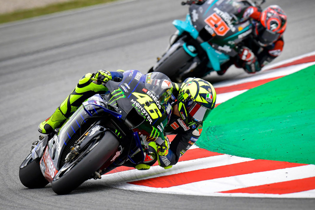 รอสซี่ ไล่ตาม ฟาบิโอ กวาร์ตาราโร นักบิดเฟรนช์คนปัจจุบันของ ปิโตรนาส ยามาฮ่า เอสอาร์ที เพียง 0.7 วินาที ขณะที่เหลือการแข่งขันเพียง 9 รอบสนาม ก่อนที่นักบิดอิตาเลียนจะพลาดล้มในขณะพลิกรถในโค้งที่ 2 ของ เซอร์กิต เดอ บาร์เซโลน่า-คาตาลุนญ่า เมื่อวันอาทิตย์ที่ผ่านมา