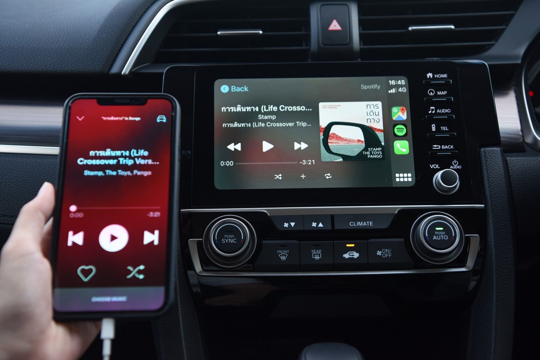 ก่อนออกเดินทาง สองเพื่อนซี้ไม่พลาดที่จะเชื่อมต่อสมาร์ตโฟนกับฟังก์ชัน Apple CarPlay บนระบบเครื่องเสียงหน้าจอสัมผัสขนาด 7 นิ้ว แบบ Advanced Touch เพื่อฟังเพลงบนรถเพลินๆ ผ่านแอปพลิเคชัน Music Streaming ทำให้สนุกสนานทุกการเดินทางและไม่พลาดทุกการติดต่อ ก่อนจะค้นหาเส้นทางใน Google Maps ไปยัง โรงแรมไฮแอท รีเจนซี แบงค็อก สุขุมวิท ด้วยระบบสั่งการด้วยเสียง Siri