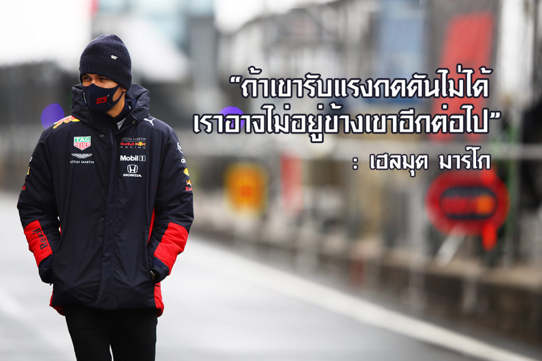 เฮลมุต มาร์โก ขรัวเฆ่าผู้ทรงอิทธิพลของ เรดบูลล์ เรซซิ่ง ออกโรงกดดัน อเล็กซานเดอร์ อัลบอน อังศุสิงห์ นักขับไทยให้รีดศักยภาพออกมาให้ถึงที่สุด เพราะหากทนแรงกดดันไม่ไหวจน “ฟอร์มบู่” ต่อเนื่อง ทีมอาจเรียกใช้ตัวเลือกอื่นอย่าง นิโก ฮัลเคนเบิร์ก หรือ เซอร์จิโอ เปเรซ