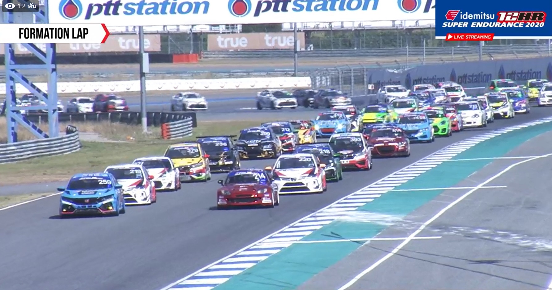 ศึก Idemitsu 12hr Super Endurance 2020 เปิดฉากอย่างเป็นทางการ ในช่วงสายที่ผ่านมาออกสตาร์ทในเวลา 10.00 น. ที่ ช้าง อินเตอร์เนชั่นแนล เซอร์กิต ท่ามกลางรถแข่งประจำกริดทั้งสิ้น 49 คัน หลังจากที่ 2 คันไม่สามารถแแก้ปัญหาทัน