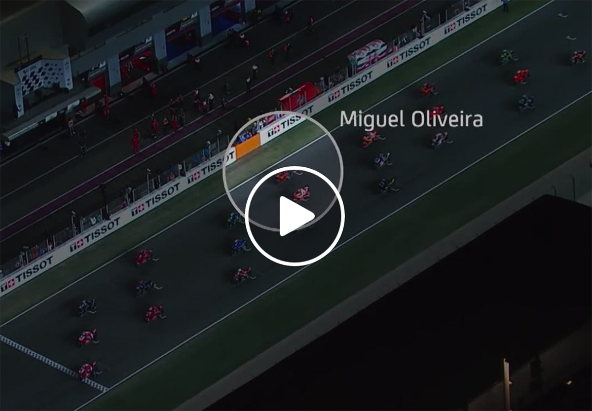 [คลิป] มิเกล โอลิเวียร่า ดาวบิดโปรตุกีส สังกัด เรดบูลล์ เคทีเอ็ม แฟ็คตอรี เรซซิ่ง เปิดเผยจังหวะออกสตาร์ท ตั้งใจเลียนแบบ ฮอร์เก มาร์ติน ในสนามแรกที่กาตาร์ กรังด์ปรีซ์ โดยเขาออกสตาร์ทในกริดที่ 14 และทะยานขึ้นมาถึงอันดับ 4 ได้ในเวลาอันรวดเร็ว ทว่า โชคร้ายที่เขาไม่สามารถไปถึงฝั่งฝันเช่นเดียวกับมาร์ตินได้