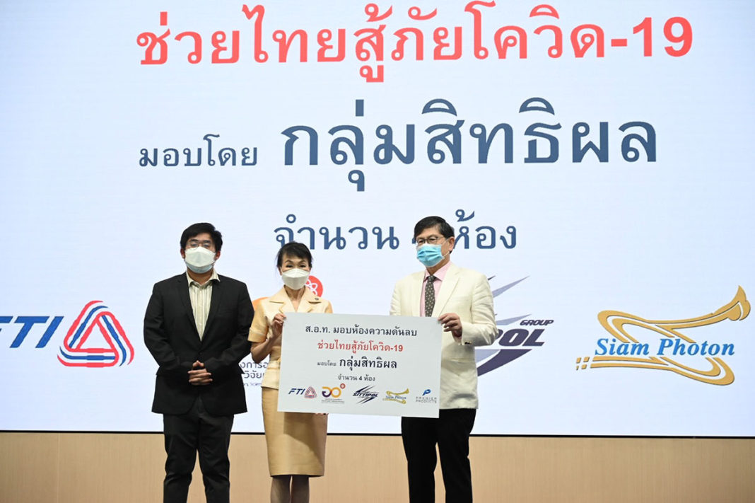 นางพิมพ์ใจ ลี้อิสสระนุกูล ประธานกรรมการบริหาร บริษัท อีโนเว รับเบอร์ (ประเทศไทย) จำกัด (มหาชน) กรรมการกลุ่มสิทธิผล รองประธานสภาอุตสาหกรรมแห่งประเทศไทย ประธานสายงานมาตรฐานเพื่ออุตสาหกรรม เป็นตัวแทนมอบห้องความดันลบแบบ Modular Unit จำนวน 4 ห้อง จากจำนวนรวมทั้งหมด 10 ห้อง ผ่าน “กองทุน ส.อ.ท. ช่วยไทยสู้ภัยโควิด-19” ให้กับโรงพยาบาลธรรมศาสตร์เฉลิมพระเกียรติ