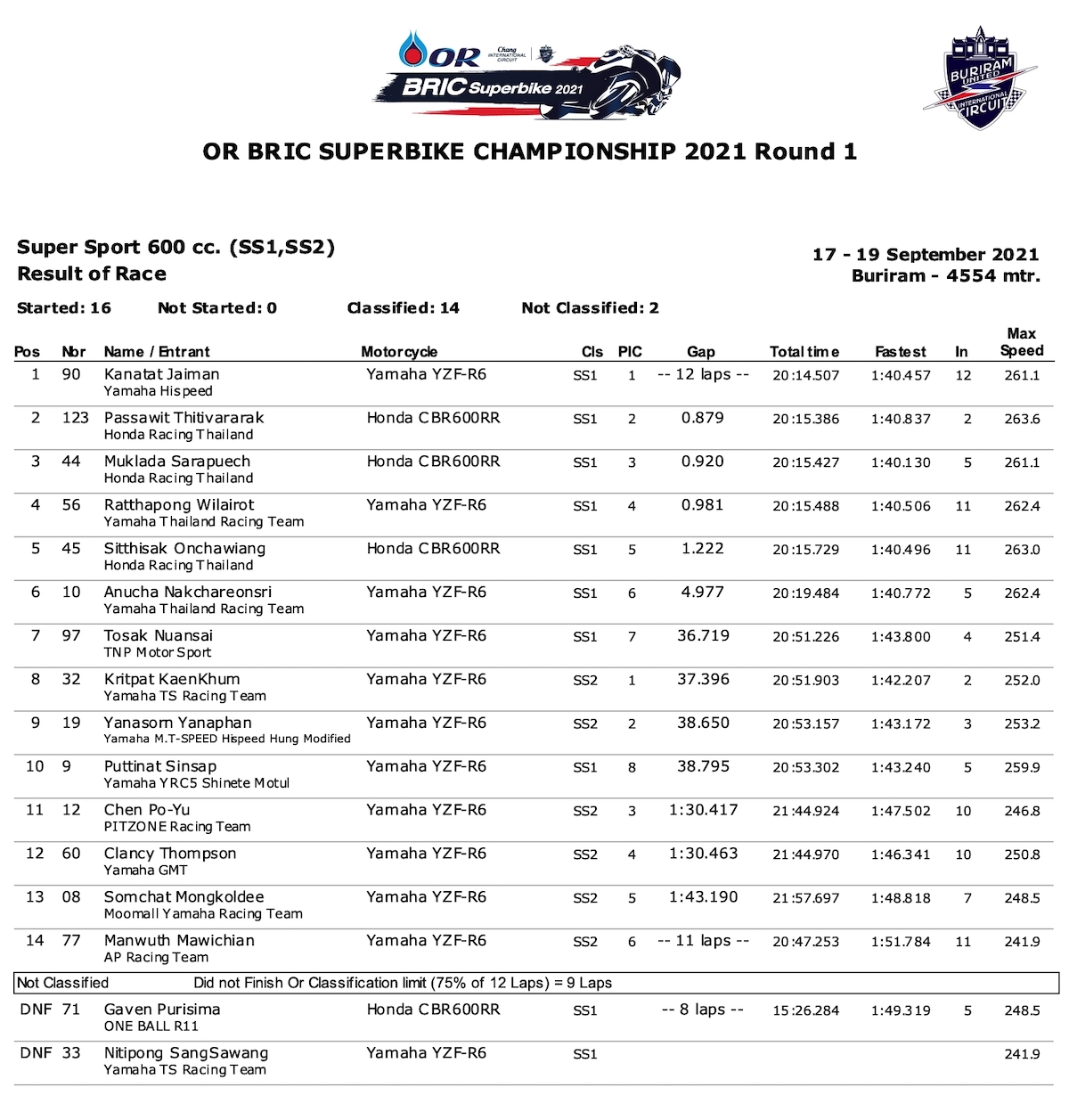 การแข่งขันในรุ่น ซูเปอร์สปอร์ต 600 ซีซี นับเป็นการขับเคี่ยวอย่างเข้มข้นระหว่างสองทีมโรงงานยักษ์ใหญ่อย่าง “ยามาฮ่า” และ “ฮอนด้า” โดยมีหนึ่งนักบิดจากทีมอิสระอย่าง “ฟอง” คณาทัต ใจมั่น จาก ยามาฮ่า ไฮสปีด เป็นตัวสอดแทรก