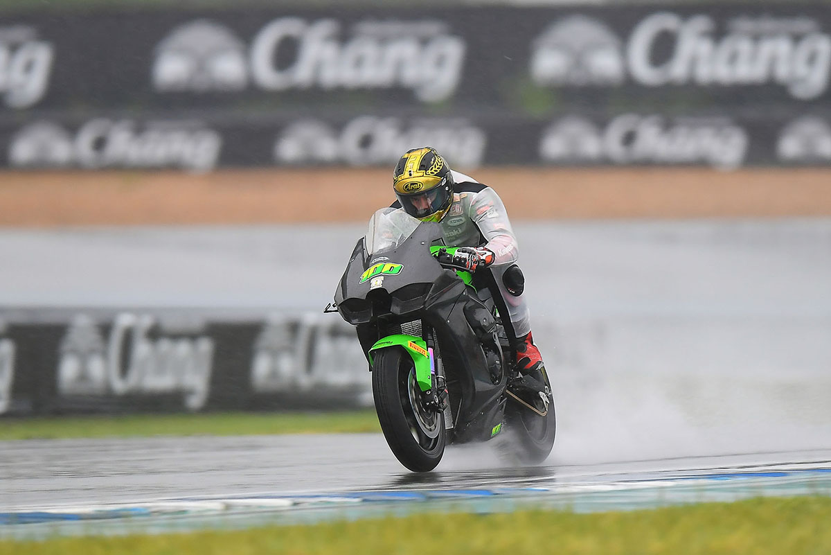 “ติ๊งโน๊ต” ฐิติพงศ์ วโรกร แชมป์สองสนามซ้อน จาก คาวาซากิ ไทยแลนด์ เรซซิ่ง ทีม ทะยานคว้าอันดับ 1 ในการซ้อมวันแรกของ ศึกซูเปอร์ไบค์ชิงแชมป์ประเทศไทย “โออาร์ บีอาร์ไอซี ซูเปอร์ไบค์” สนาม 3 หลังทุกรุ่นลงบิดท่ามกลางสายฝนที่กระหน่ำลงมาอย่างหนัก ก่อนลุ้นเดือดวันอาทิตย์นี้ ที่ สนามช้าง อินเตอร์เนชั่นแนล เซอร์กิต จ.บุรีรัมย์