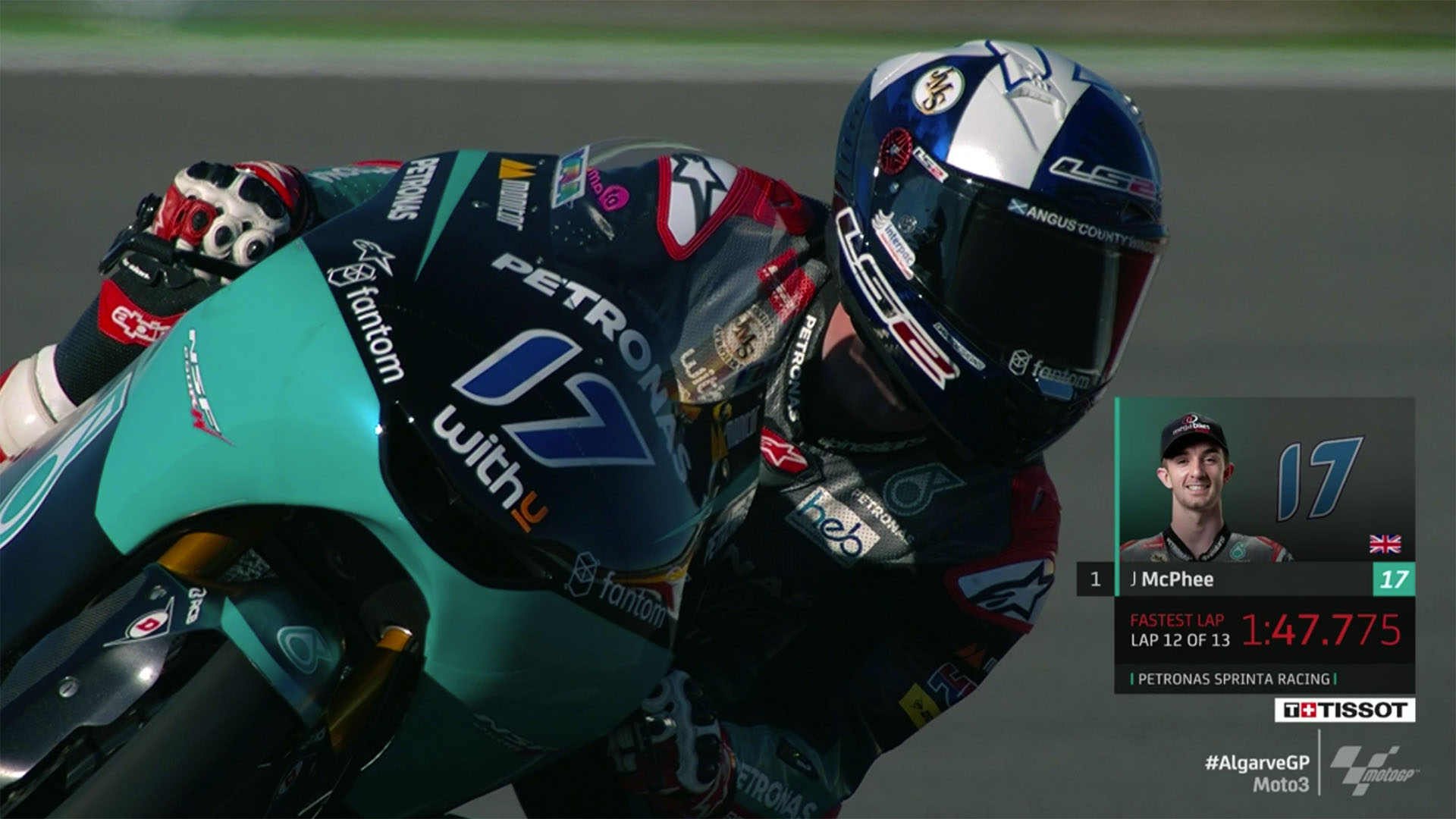 | 1 | 17 | John McPhee | Honda | 13 | 1’47.775 | 153.386 | 0 | ||