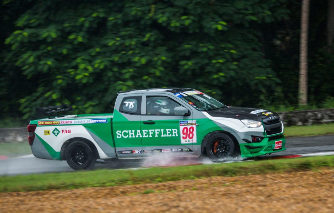 “โต๊ะกัง” วุฒิภัทร คงกฤติพงศ์ ยอดนักขับจอมดุจาก แชฟฟ์เลอร์ ไทยแลนด์ เรซซิ่ง ทีม สร้างผลงานระดับมาสเตอร์ ควบรถแข่งหมายเลข 98 ออกสตาร์ทจากโพลฝ่าสายฝนคว้าชัยชนะในศึก Toyo Tires Schaeffler Racing Car Thailand 2021 สนาม 4 เรซแรกของรุ่น Toyo Schaeffler Isuzu One Make Race 1.9 เมื่อบ่ายวันเสาร์นี้