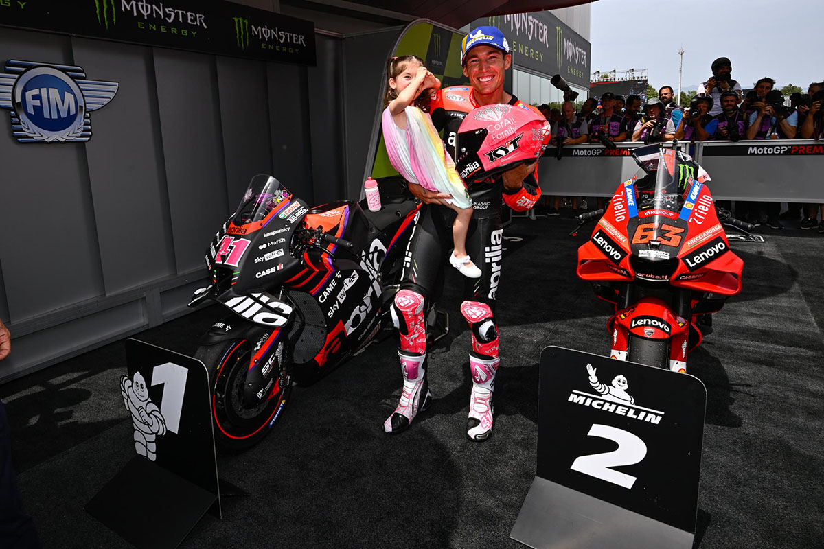 อย่างไรก็ดี จังหวะออกสตาร์ท เอสปาร์กาโร เสียตำแหน่งผู้นำให้กับ ฟาบิโอ กวาร์ตาราโร แชมป์โลกจาก ยามาฮ่า ซึ่งกลายเป็นผู้ชนะในเรซนี้ ขณะที่นักบิดสแปนิชต้องเจอการไล่บดอย่างหนักจาก ฮอร์เก มาร์ติน และ โยฮันน์ ซาร์โก คู่หูจาก พรามัค เรซซิ่ง