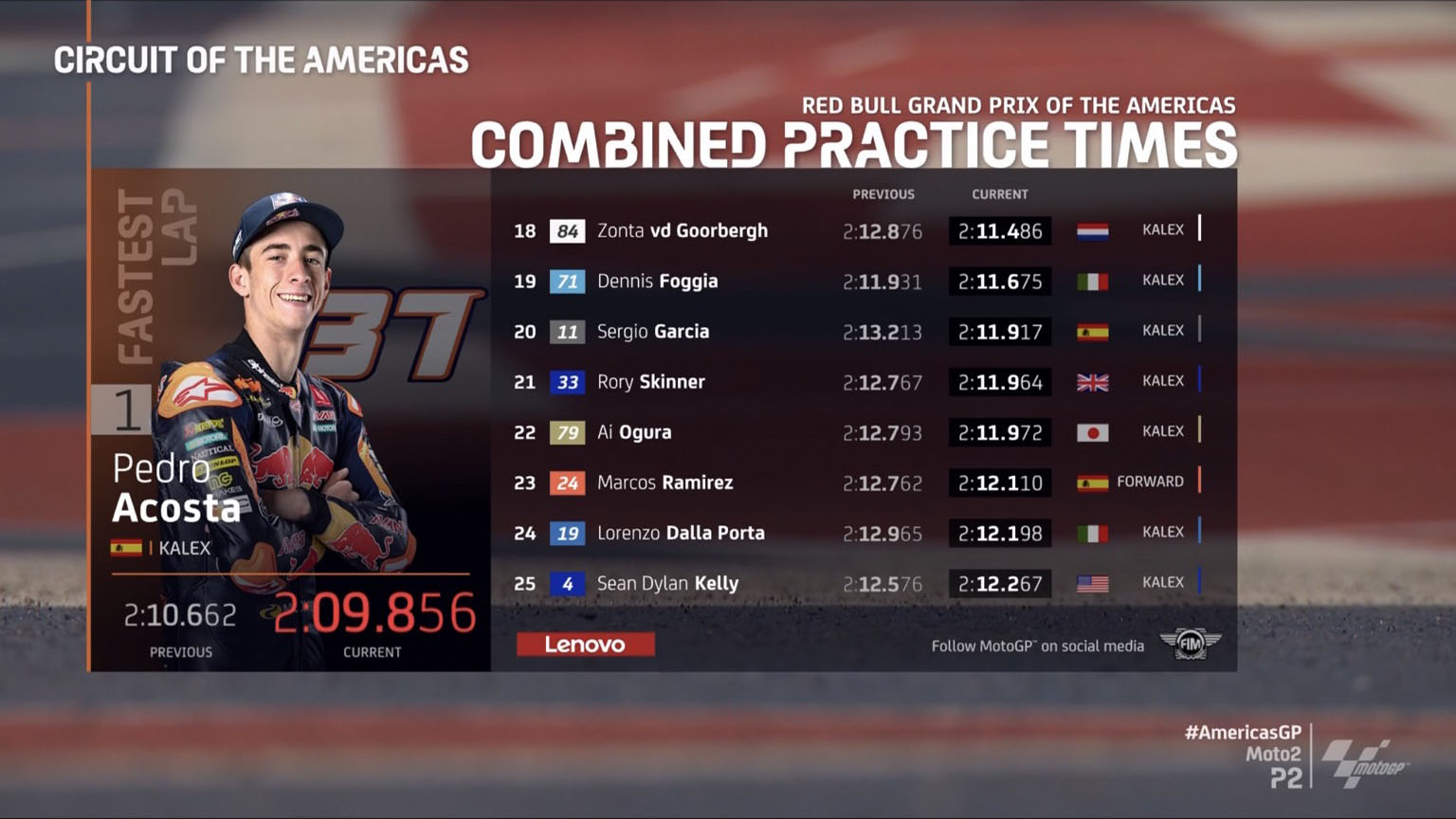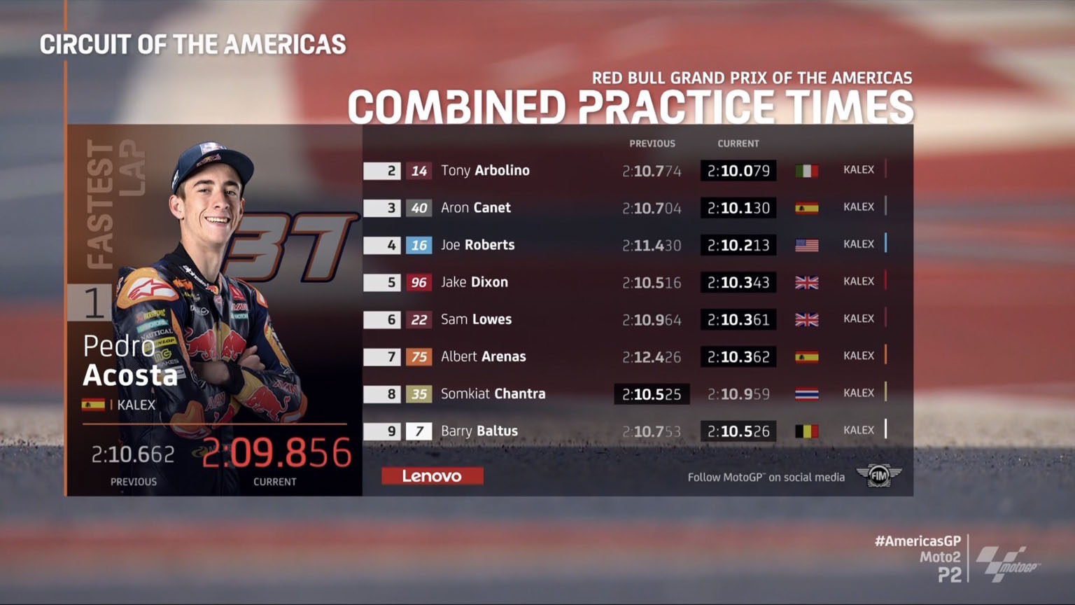 การแข่งขันจักรยานยนต์ทางเรียบชิงแชมป์โลก รุ่น โมโตทู 2023 สนาม 3 รายการ อเมริกาส์ กรังด์ปรีซ์ ผ่านโปรแกรมการซ้อม 2 ครั้งแรก เมื่อคืนวันศุกร์ที่ 14 เมษายนที่ผ่านมา ที่ เซอร์กิต ออฟ ดิ อเมริกาส์ เมืองออสติน รัฐเท็กซัส ประเทศสหรัฐอเมริกา