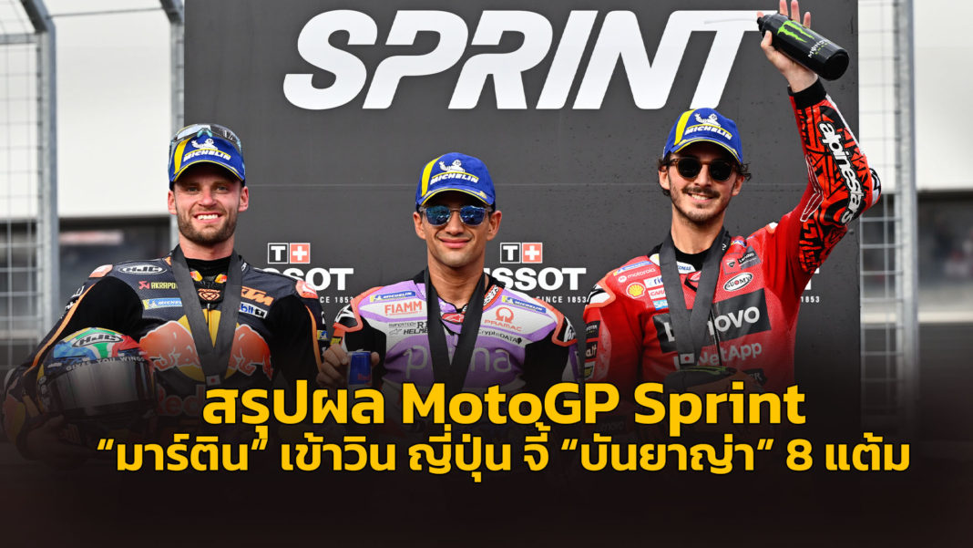 ฮอร์เก มาร์ติน ยอดนักบิดจอมดุชาวสแปนิชจาก พรามัค เรซซิ่ง สร้างผลงานระดับมาสเตอร์ สตาร์ทจากโพล นำม้วนเดียวจบ คว้าชัยชนะในศึก โมโตจีพี สปรินต์ สนาม 14 รายการ เจแปนีส กรังด์ปรีซ์ เหนือ แบรด บินเดอร์ นักบิดอาฟริกาใต้จาก เคทีเอ็ม ในอันดับ 2 ส่วน ฟรานเชสโก้ บันยาญ่า เฉือน แจ็ค มิลเลอร์ คว้าเหรียญทองแดง