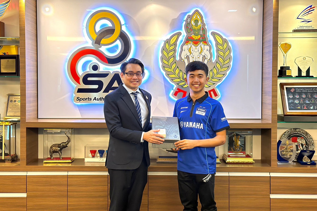 นายภาณุพล กิตติคำรณ รองผู้จัดการใหญ่ฝ่ายขาย บริการ และอะไหล่ นายวีรพงษ์ ธนากิจจานนท์ ผู้อำนวยการยามาฮ่า ไทยแลนด์ เรซซิ่งทีม พร้อมผู้บริหารระดับสูง บริษัท ไทยยามาฮ่ามอเตอร์ จำกัด พา “ไอเดีย” กฤตภัทร เขื่อนคำ เข้าพบ ดร.ก้องศักด ยอดมณี ผู้ว่าการการกีฬาแห่งประเทศไทย (กกท.) ซึ่งให้การสนับสนุนลุยศึกการแข่งขันรถจักรยานยนต์ทางเรียบที่ยิ่งใหญ่ที่สุดของโลก MotoGP 2023 ที่ประเทศไทย ในรายการ OR Thailand Grand Prix 2023 ที่ สนามช้างฯ จ.บุรีรัมย์ ในรุ่น Moto3