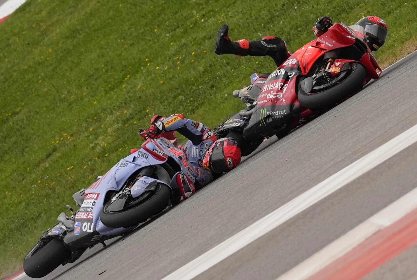 จากเหตุการณ์เพื่อนร่วมทีมดูคาติ กำลังแย่งชิงตำแหน่งที่ 5 ขณะดวลความเร็วกันในรอบที่ 23 ซึ่งเหลืออีกเพียง 2 รอบก่อนจบการแข่งขัน แล้วพวกเขาเกิดปะทะกันจนพลาดล้มด้วยกันทั้งคู่